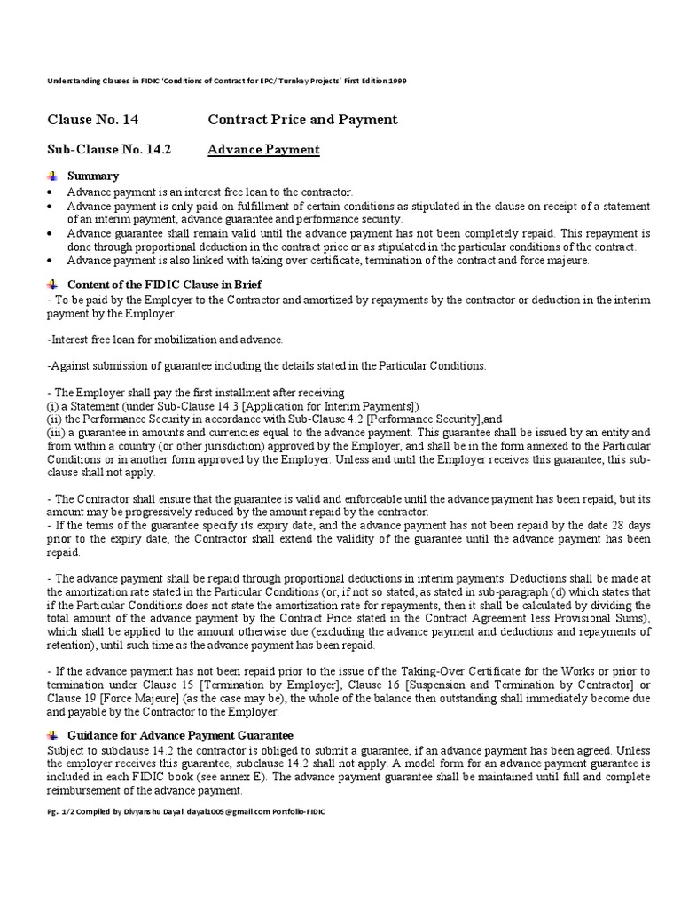 Clause 14 2 Advance Payment Understanding Clauses In Fidic
