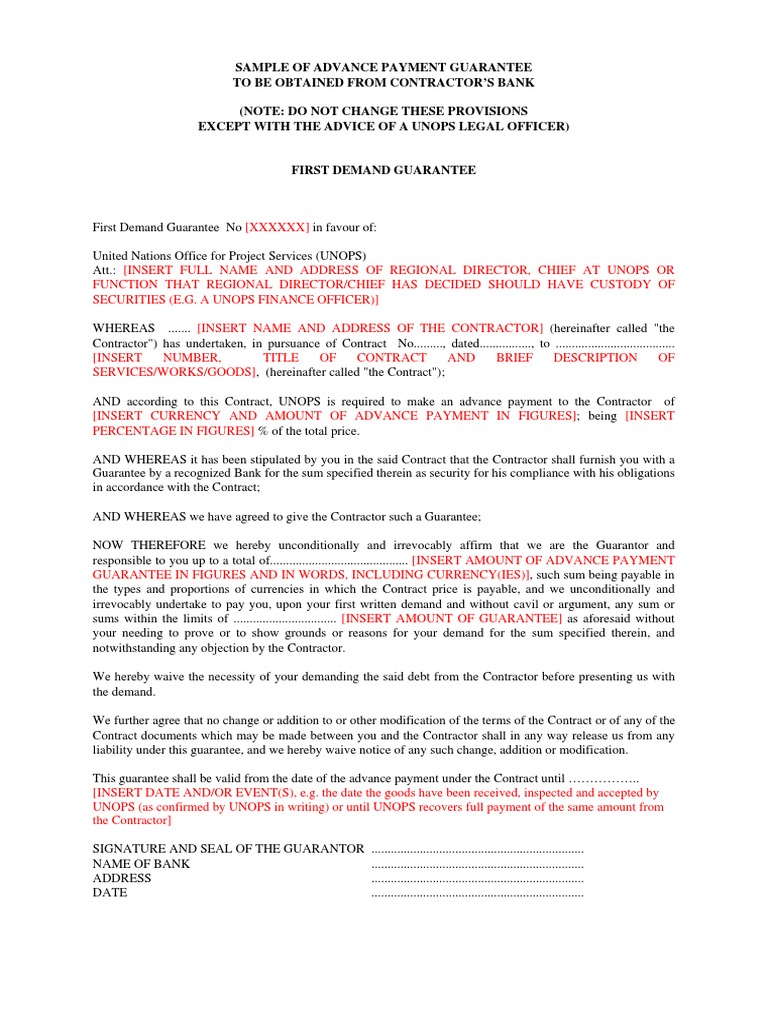 Advance Payment Guarantee Format Guarantee Business Law