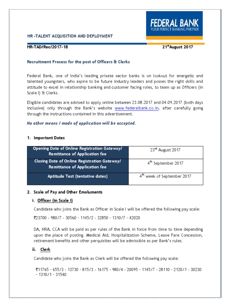 Federal Bank Clerk Salary Detailed Salary Structure Job Profile