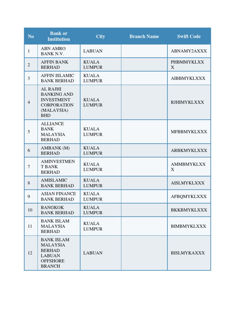 Malaysia Bank Routing Numbers Swift Code Completed List Online