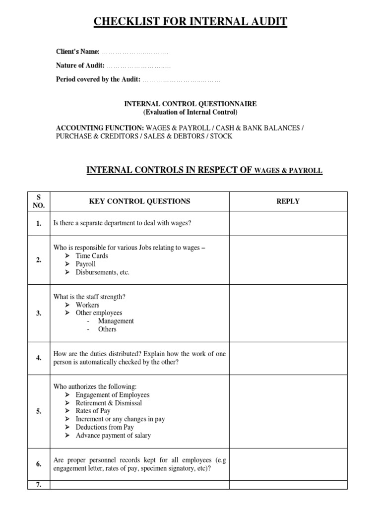 Checklist For Internal Audit Pdf Free Download