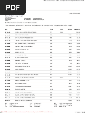Halifax Print Friendly Statement Pdf Payments Cheque