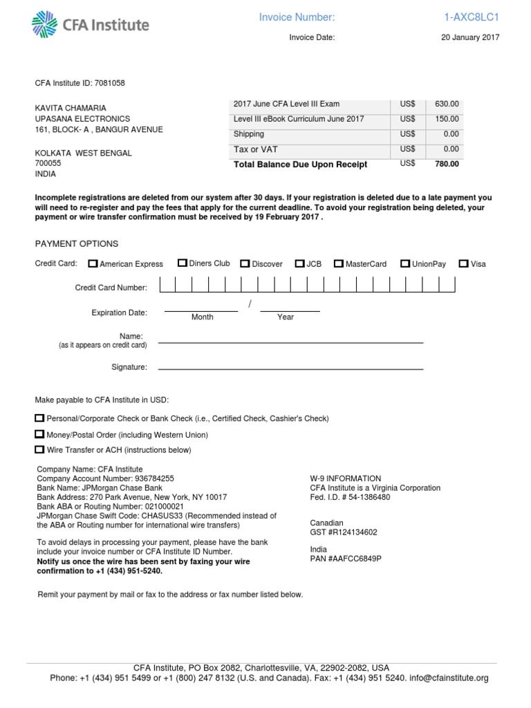 Cfa Program Invoice Payments Invoice