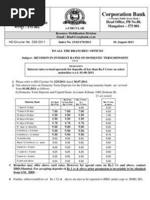Corporation Bank Fd Rates Term Deposits Of Corporation Bank