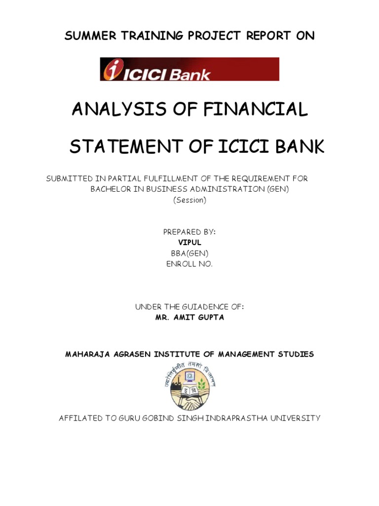 Project Report On Financial Analysis Of Icici Bank By Sanjay Gupta
