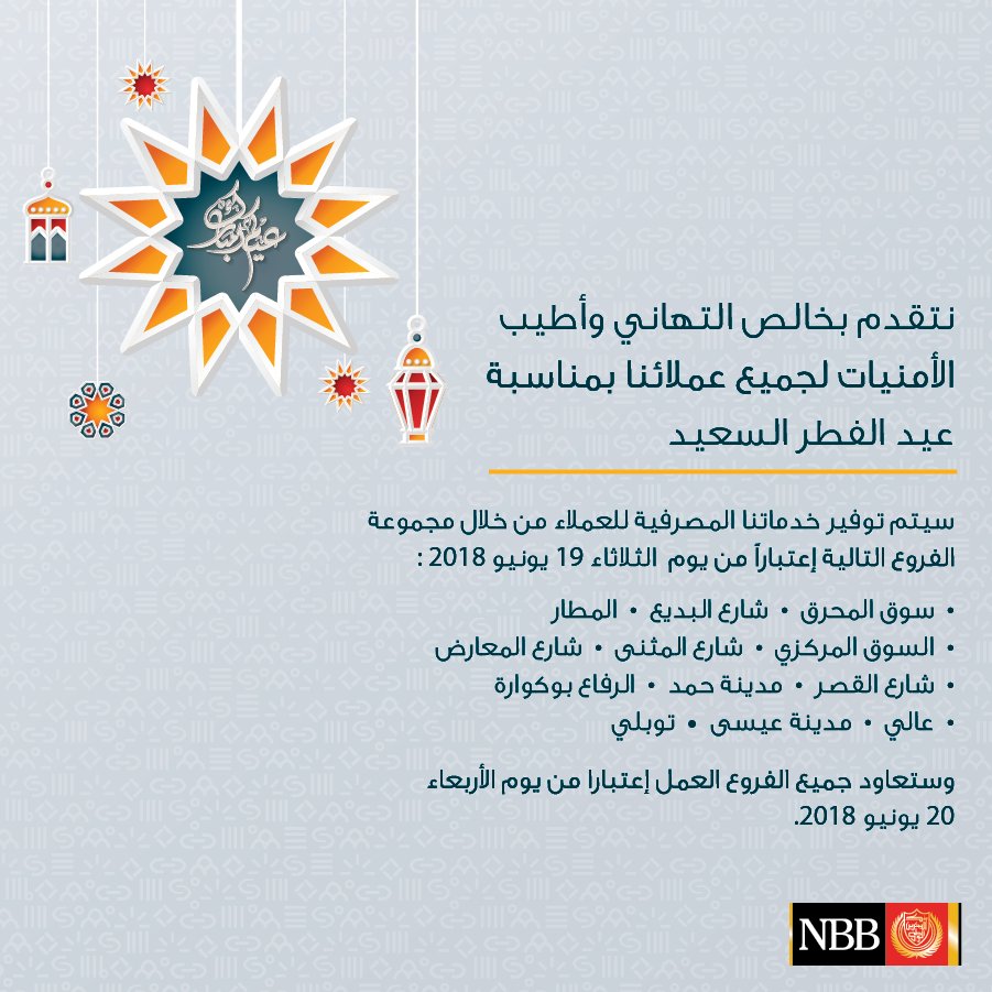 National Bank Of Bahrain On Twitter فترات عمل الفروع في العيد