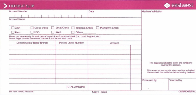 Eastwest Editable Deposit Slip Fill Online Printable Fillable