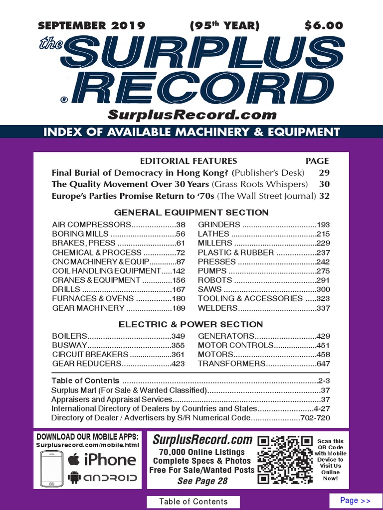 September 2019 Surplus Record Machinery Equipment Directory